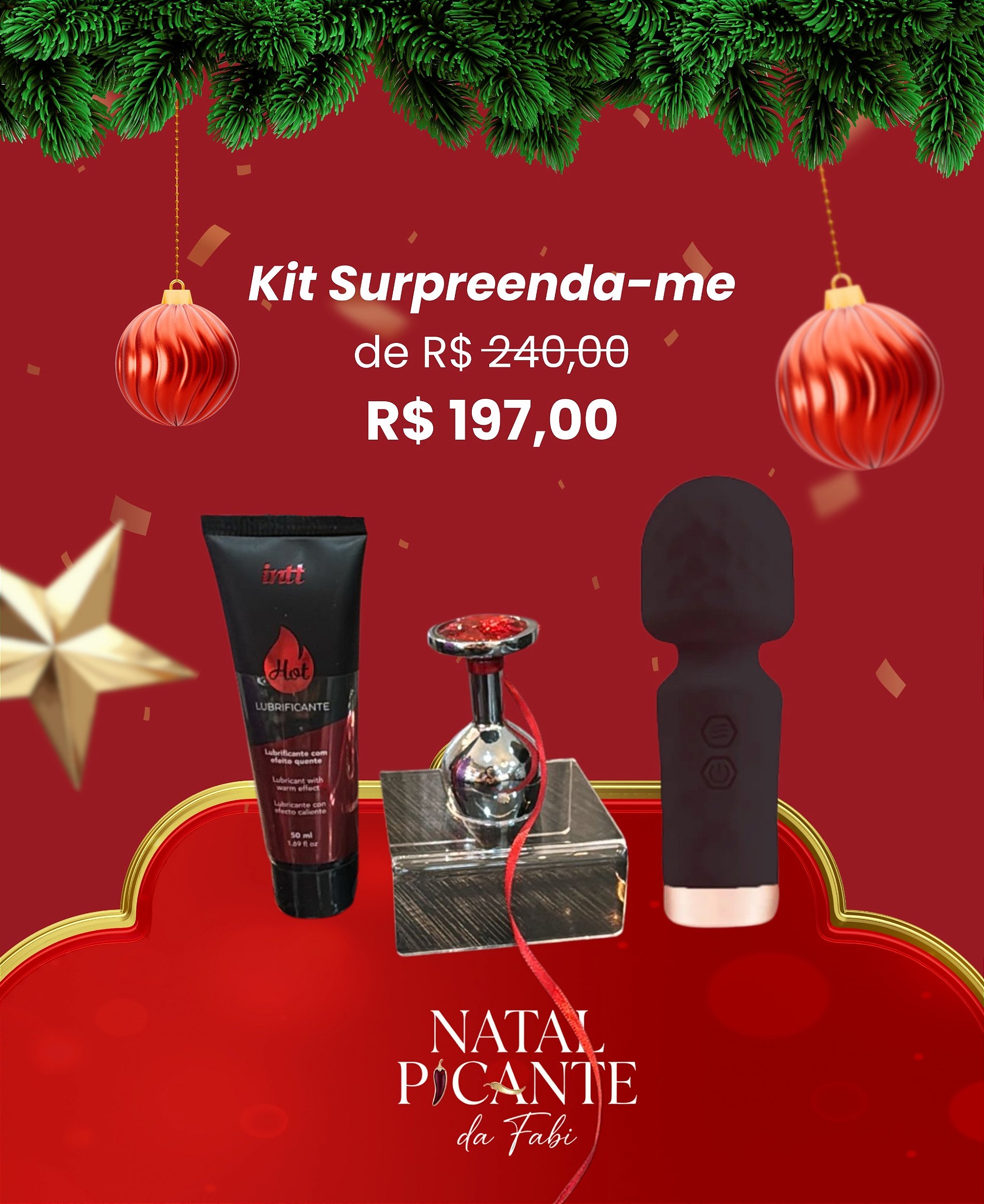 Natal Picante merece ter surpresas, então SURPREENDA com este super kit que contém: